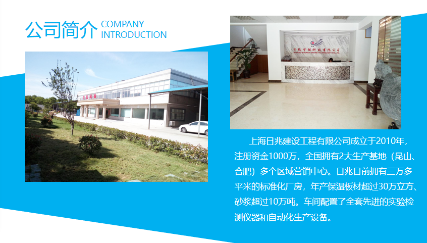 上海日兆建設工程有限公司是一家具備防腐、保溫節能、涂料防水和建筑裝飾施工資質為一體的企業。下轄有江蘇日兆節能科技有限公司、安徽省天碩環保工程有限公司、安徽日兆節能科技有限公司和上海盈投實業發展有限公司。