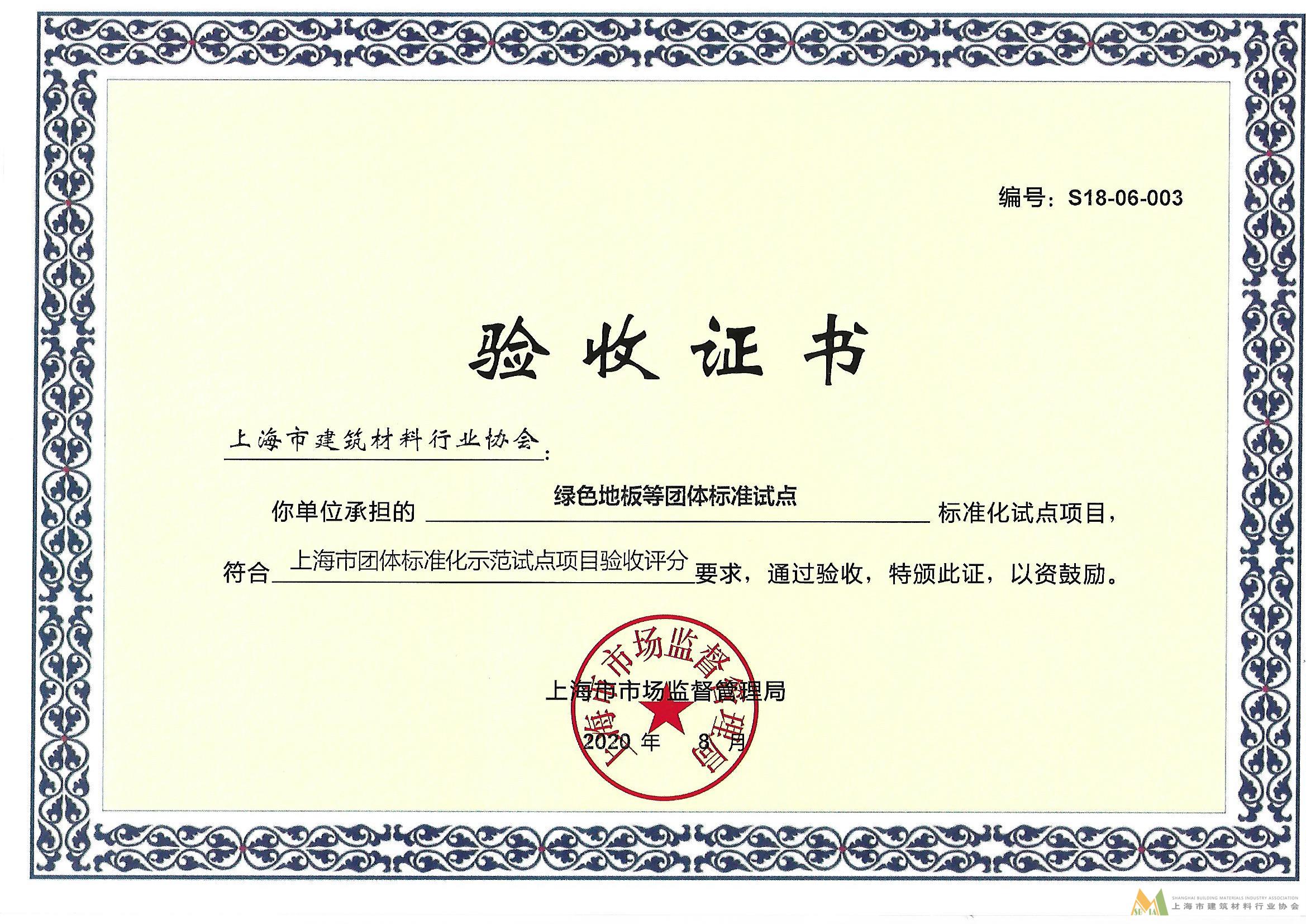 祝賀上海市建筑材料行業(yè)協(xié)會喜獲市市場監(jiān)管局團(tuán)體標(biāo)準(zhǔn)試點項目驗收證書
