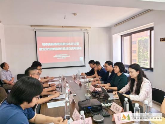 為響應《上海市城市更新行動方案(2023-2025)》,針對優秀歷史建筑文保修繕、城市風貌魅力重塑、老舊街區房屋改造、工業遺存與產業園區品質提升、大型城市空間煥新、商業綜合體活力再造等領域,探索開展既有城市更新上下游技術和材料交流活動,5月28日,上海市建筑材料行業協會和上海建工裝飾集團共同牽手,在靜安賓館項目現場召開四新技術研討交流對接會議活動。