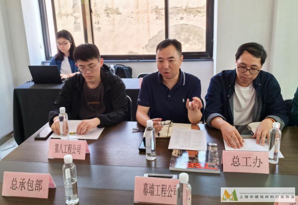 建工集團總工程師辦公室主任虞嘉盛、建筑遺產保護中心主任沈磊做了熱情洋溢的發言,集團副主任江旖旎就城市更新領域作專題交流分享,上海市建筑材料行業協會新材料分會秘書長丁秋紅主持會議。