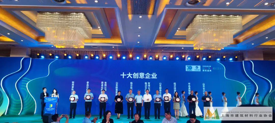 歐普家居董事長姜自蘭女士應(yīng)邀參加晚宴并代表公司獲頒臨沂·木業(yè)走過30年“十大創(chuàng)意”企業(yè)獎(jiǎng)牌。