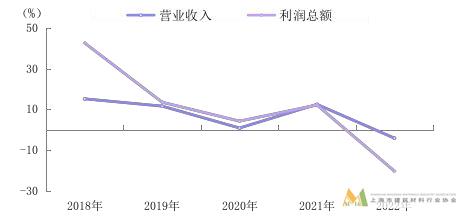 圖 1 2018—2022 年規(guī)模以上建材行業(yè)營(yíng)業(yè)收入及利潤(rùn)增速