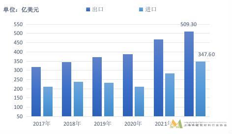 圖 3 2017—2022 年建材及非金屬礦商品出口、進(jìn)口金額